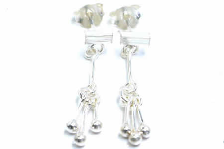 先端についた3本のチャームのプチジャラジャラ感が最高!1本の長いチャームではなく、3箇所の接合部分が、個別に揺れて独特の動きを見せる綺麗なシルバーピアスです。