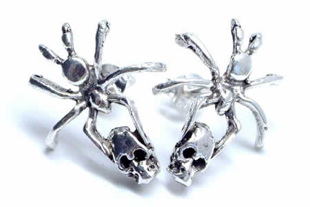 タランチュラがドクロを抱え込んでいるところをデザインしたシルバーピアスです。