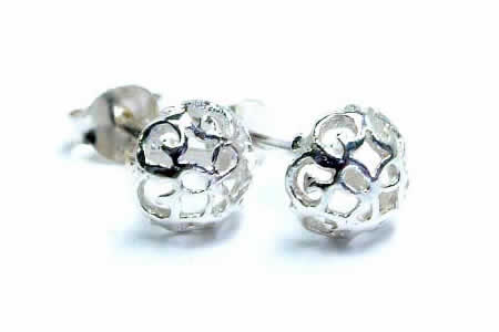 立体的なデザインですが、透かし彫りで仕上げることで、野暮ったさの無いすっきりとしたデザインのシルバーピアスに仕上げっています。