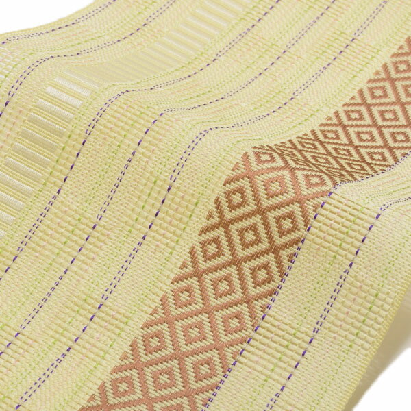 【商品内容】ひとえ帯1点【カラー】薄い黄緑色を基調とした市松の織り模様。